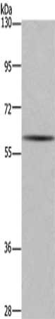 Gel: 6%SDS-PAGE, Lysate: 40 μg, Lane: Human fetal brain tissue, Primary antibody: CSB-PA102201(GAD1 Antibody) at dilution 1/571, Secondary antibody: Goat anti rabbit IgG at 1/8000 dilution, Exposure time: 1 minute