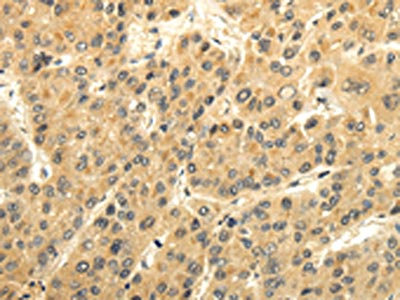 The image on the left is immunohistochemistry of paraffin-embedded Human liver cancer tissue using CSB-PA219867(GAD1 Antibody) at dilution 1/35, on the right is treated with synthetic peptide. (Original magnification: ×200)