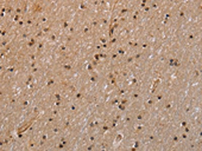The image is immunohistochemistry of paraffin-embedded Human brain tissue using CSB-PA087396(GADD45A Antibody) at dilution 1/30. (Original magnification: ×200)