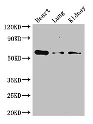 Positive WB detected in: Mouse heart tissue, Mouse lung tissue, Mouse kidney tissue