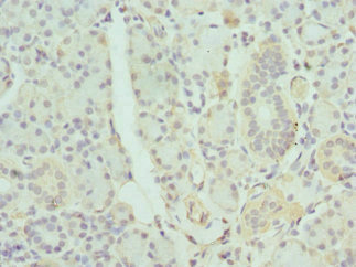 Immunohistochemistry of paraffin-embedded human pancreatic tissue using CSB-PA009337ESR1HU at dilution of 1:100