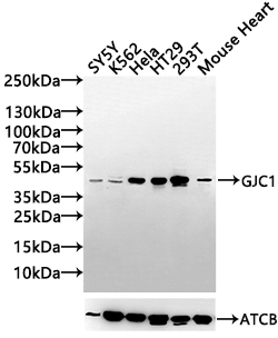 Positive WB detected in: SY5Y whole cell lysate(30μg), K562 whole cell lysate(30μg), Hela whole cell lysate(30μg), HT29 whole cell lysate(30μg),293T whole cell lysate(30μg),Mouse Heart tissue lysate30μg)