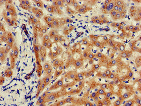 Immunohistochemistry of paraffin-embedded human liver tissue using CSB-PA009476LA01HU at dilution of 1:100
