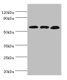 Predicted band size: 61 kDa