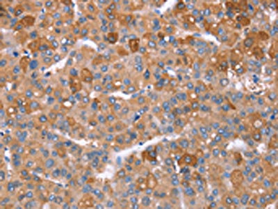 The image on the left is immunohistochemistry of paraffin-embedded Human liver cancer tissue using CSB-PA929652(GPC6 Antibody) at dilution 1/40, on the right is treated with synthetic peptide. (Original magnification: ×200)