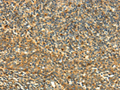 The image on the left is immunohistochemistry of paraffin-embedded Human tonsil tissue using CSB-PA907686(GRB2 Antibody) at dilution 1/25, on the right is treated with fusion protein. (Original magnification: ×200)