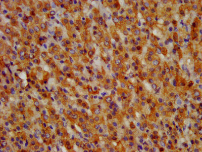 IHC image of CSB-PA009943LA01HU diluted at 1:300 and staining in paraffin-embedded human adrenal gland tissue performed on a Leica BondTM system. After dewaxing and hydration, antigen retrieval was mediated by high pressure in a citrate buffer (pH 6.0). Section was blocked with 10% normal goat serum 30min at RT. Then primary antibody (1% BSA) was incubated at 4°C overnight. The primary is detected by a biotinylated secondary antibody and visualized using an HRP conjugated SP system.