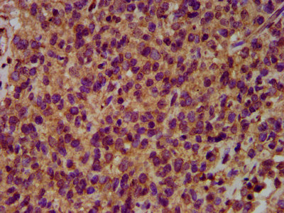 IHC image of CSB-PA889188LA01HU diluted at 1:500 and staining in paraffin-embedded human glioma performed on a Leica BondTM system. After dewaxing and hydration, antigen retrieval was mediated by high pressure in a citrate buffer (pH 6.0). Section was blocked with 10% normal goat serum 30min at RT. Then primary antibody (1% BSA) was incubated at 4°C overnight. The primary is detected by a biotinylated secondary antibody and visualized using an HRP conjugated SP system.