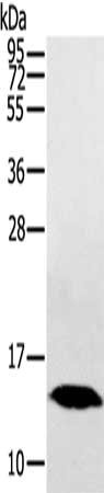 Gel: 8%SDS-PAGE, Lysate: 40 μg, Lane: Human fetal liver tissue, Primary antibody: CSB-PA038349(HINT1 Antibody) at dilution 1/200, Secondary antibody: Goat anti rabbit IgG at 1/8000 dilution, Exposure time: 5 minutes