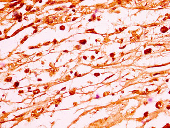 IHC image of CSB-PA010378OA62nsucHU diluted at 1:50 and staining in paraffin-embedded human melanoma performed on a Leica BondTM system. After dewaxing and hydration, antigen retrieval was mediated by high pressure in a citrate buffer (pH 6.0). Section was blocked with 10% normal goat serum 30min at RT. Then primary antibody (1% BSA) was incubated at 4°C overnight. The primary is detected by a biotinylated secondary antibody and visualized using an HRP conjugated SP system.