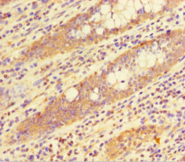 Immunohistochemistry of paraffin-embedded human colon cancer using CSB-PA010378HA01HU at dilution of 1:100