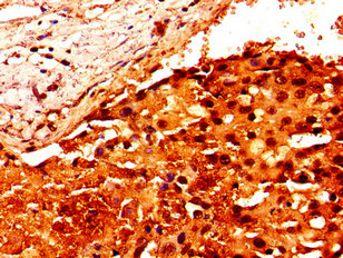 Immunohistochemistry of paraffin-embedded human breast cancer using CSB-PA010389PA101nogHU at dilution of 1:100