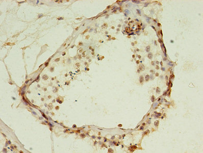Immunohistochemistry of paraffin-embedded human testis tissue using CSB-PA010389LA01HU at dilution of 1:100