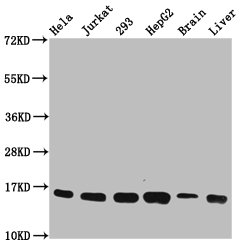 Positive WB detected in: Hela whole cell lysate, Jurkat whole cell lysate, 293 whole cell lysate, HepG2 whole cell lysate, Rat brain tissue, Rat liver tissue