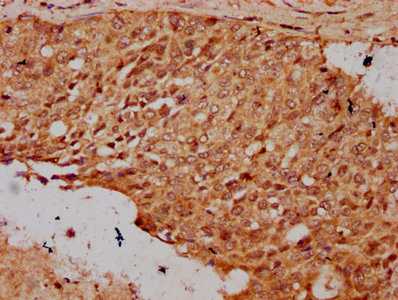 IHC image of CSB-PA010418OA23nsucHU diluted at 1:20 and staining in paraffin-embedded human cervical cancer performed on a Leica BondTM system. After dewaxing and hydration, antigen retrieval was mediated by high pressure in a citrate buffer (pH 6.0). Section was blocked with 10% normal goat serum 30min at RT. Then primary antibody (1% BSA) was incubated at 4°C overnight. The primary is detected by a biotinylated secondary antibody and visualized using an HRP conjugated SP system.