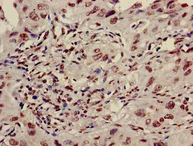 Immunohistochemistry of paraffin-embedded human lung cancer using CSB-PA010418OA36nme2HU at dilution of 1:100