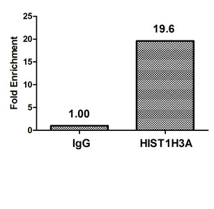 Chromatin Immunoprecipitation Hela (4*106) were treated with Micrococcal Nuclease, sonicated, and immunoprecipitated with 8µg anti-HIST1H3A (CSB-PA010418PA27nme1HU) or a control normal rabbit IgG. The resulting ChIP DNA was quantified using real-time PCR with primers against the β-Globin promoter.