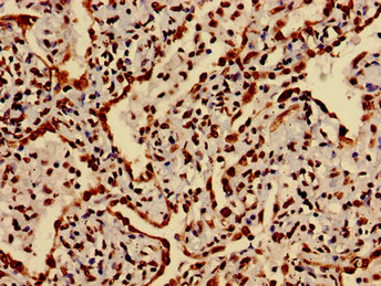 Immunohistochemistry of paraffin-embedded human lung cancer using CSB-PA010418PA27nme1HU at dilution of 1:100