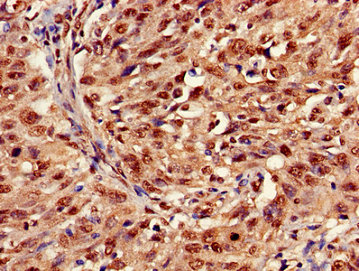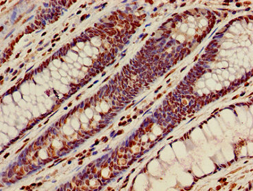 Immunohistochemistry of paraffin-embedded human colon cancer using CSB-PA010418PA36nme1HU at dilution of 1:100