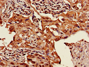 Immunohistochemistry of paraffin-embedded human lung cancer using CSB-PA010418OA36nme1HU at dilution of 1:100