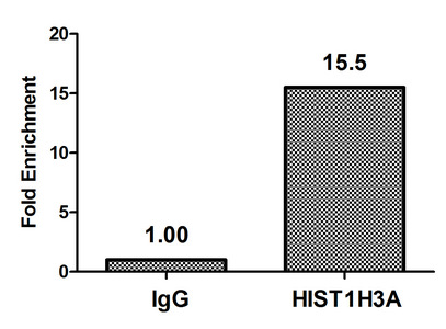 Chromatin Immunoprecipitation Hela (4*106) were treated with Micrococcal Nuclease, sonicated, and immunoprecipitated with 8µg anti-HIST1H3A (CSB-PA010418OA04nme1HU) or a control normal rabbit IgG. The resulting ChIP DNA was quantified using real-time PCR with primers against the β-Globin promoter.