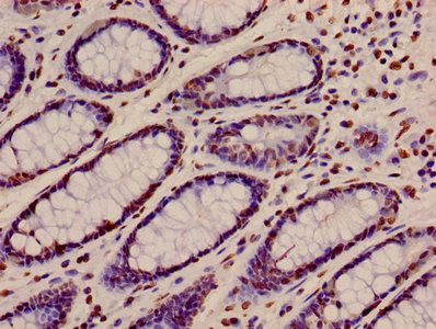 Immunohistochemistry of paraffin-embedded human colon cancer using CSB-PA010429PA12nacHU at dilution of 1:100