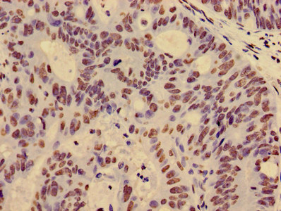 Immunohistochemistry of paraffin-embedded human colon cancer using CSB-PA010429OA12nacHU at dilution of 1:100