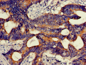 Immunohistochemistry of paraffin-embedded human colon cancer using CSB-PA010524LA01HU at dilution of 1:100