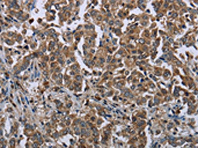 The image on the left is immunohistochemistry of paraffin-embedded Human liver cancer tissue using CSB-PA929004(HMGCR Antibody) at dilution 1/20, on the right is treated with fusion protein. (Original magnification: ×200)