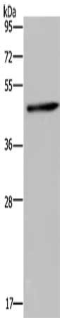 Gel: 10%SDS-PAGE, Lysate: 40 μg, Lane: Mouse brain tissue, Primary antibody: CSB-PA824881(HOMER1 Antibody) at dilution 1/300, Secondary antibody: Goat anti rabbit IgG at 1/8000 dilution, Exposure time: 10 seconds