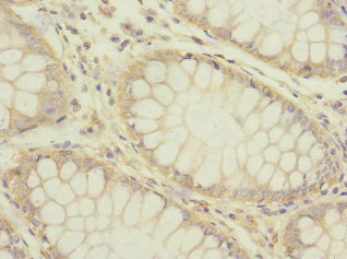 Immunohistochemistry of paraffin-embedded human colon cancer using CSB-PA010891ESR2HU at dilution of 1:100