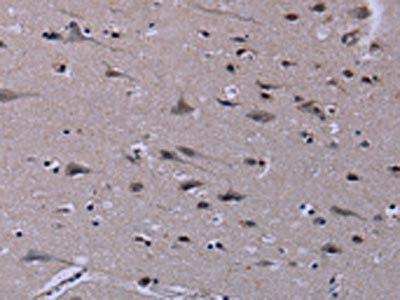 The image on the left is immunohistochemistry of paraffin-embedded Human brain tissue using CSB-PA576712(ID3 Antibody) at dilution 1/40, on the right is treated with synthetic peptide. (Original magnification: ×200)