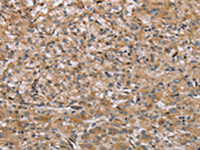 The image on the left is immunohistochemistry of paraffin-embedded Human prostate cancer tissue using CSB-PA942640(IL1RN Antibody) at dilution 1/25, on the right is treated with fusion protein. (Original magnification: ×200)
