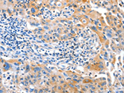 The image on the left is immunohistochemistry of paraffin-embedded Human breast cancer tissue using CSB-PA598310(IMMT Antibody) at dilution 1/12, on the right is treated with fusion protein. (Original magnification: ×200)