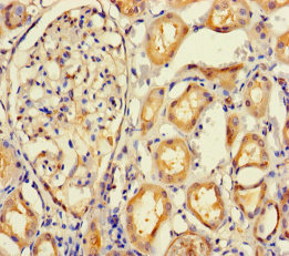 Immunohistochemistry of paraffin-embedded human kidney tissue using CSB-PA889191LA01HU at dilution of 1:100