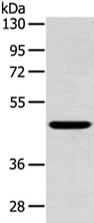 Gel: 8%SDS-PAGE, Lysate: 40 μg, Lane: Mouse kidney tissue, Primary antibody: CSB-PA932977(INHBB Antibody) at dilution 1/400 dilution, Secondary antibody: Goat anti rabbit IgG at 1/8000 dilution, Exposure time: 5 seconds