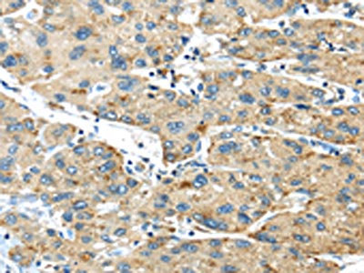 The image on the left is immunohistochemistry of paraffin-embedded Human liver cancer tissue using CSB-PA927690(ISM2 Antibody) at dilution 1/40, on the right is treated with synthetic peptide. (Original magnification: ×200)