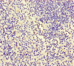 Immunohistochemistry of paraffin-embedded human spleen tissue using CSB-PA011867LA01HU at dilution of 1:100
