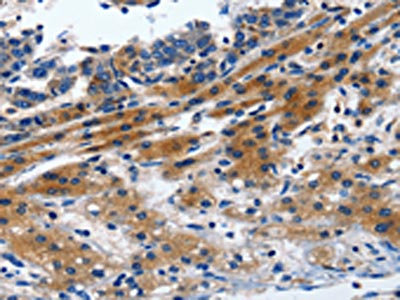 The image on the left is immunohistochemistry of paraffin-embedded Human liver cancer tissue using CSB-PA932598(ITGAL Antibody) at dilution 1/20, on the right is treated with synthetic peptide. (Original magnification: ×200)