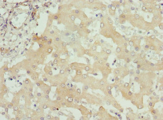 Immunohistochemistry of paraffin-embedded human liver tissue using CSB-PA613412ESR2HU at dilution of 1:100