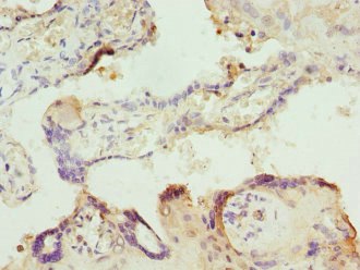 Immunohistochemistry of paraffin-embedded human placenta tissue using CSB-PA613412ESR2HU at dilution of 1:100