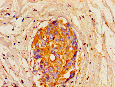Immunohistochemistry of paraffin-embedded human breast cancer using CSB-PA614538LA01HU at dilution of 1:100