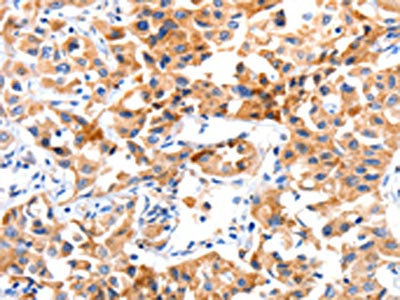 功能:Non-receptor tyrosine kinase involved in various processes such as cell growth, development, differentiation or histone modifications. Mediates essential signaling events in both innate and adaptive immunity. In the cytoplasm, plays a pivotal role in signal transduction via its association with type I receptors such as growth hormone (GHR), prolactin (PRLR), leptin (LEPR), erythropoietin (EPOR), thrombopoietin (THPO); or type II receptors including IFN-alpha, IFN-beta, IFN-gamma and multiple interleukins. Following ligand-binding to cell surface receptors, phosphorylates specific tyrosine residues on the cytoplasmic tails of the receptor, creating docking sites for STATs proteins. Subsequently, phosphorylates the STATs proteins once they are recruited to the receptor. Phosphorylated STATs then form homodimer or heterodimers and translocate to the nucleus to activate gene transcription. For example, cell stimulation with erythropoietin (EPO) during erythropoiesis leads to JAK2 autophosphorylation, activation, and its association with erythropoietin receptor (EPOR) that becomes phosphorylated in its cytoplasmic domain. Then, STAT5 (STAT5A or STAT5B) is recruited, phosphorylated and activated by JAK2. Once activated, dimerized STAT5 translocates into the nucleus and promotes the transcription of several essential genes involved in the modulation of erythropoiesis. Part of a signaling cascade that is activated by increased cellular retinol and that leads to the activation of STAT5 (STAT5A or STAT5B). In addition, JAK2 mediates angiotensin-2-induced ARHGEF1 phosphorylation. Plays a role in cell cycle by phosphorylating CDKN1B. Cooperates with TEC through reciprocal phosphorylation to mediate cytokine-driven activation of FOS transcription. In the nucleus, plays a key role in chromatin by specifically mediating phosphorylation of 'Tyr-41' of histone H3 (H3Y41ph), a specific tag that promotes exclusion of CBX5 (HP1 alpha) from chromatin.