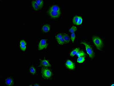 Immunofluorescent analysis of MCF-7 cells using CSB-PA878877LA01HU at dilution of 1:100 and Alexa Fluor 488-congugated AffiniPure Goat Anti-Rabbit IgG(H+L)