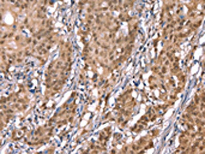 The image on the left is immunohistochemistry of paraffin-embedded Human gastic cancer tissue using CSB-PA564451(KCNJ6 Antibody) at dilution 1/40, on the right is treated with synthetic peptide. (Original magnification: ×200)