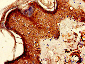 Immunohistochemistry of paraffin-embedded human skin tissue using CSB-PA012360LA01HU at dilution of 1:100