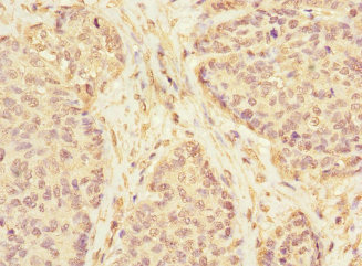 Immunohistochemistry of paraffin-embedded human ovarian cancer using CSB-PA865211ESR1HU at dilution of 1:100