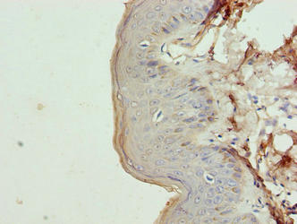 Immunohistochemistry of paraffin-embedded human skin tissue using CSB-PA856422LA01HU at dilution of 1:100