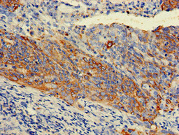Immunohistochemistry of paraffin-embedded human cervical cancer using CSB-PA012564LA01HU at dilution of 1:100