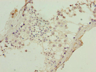 Immunohistochemistry of paraffin-embedded human testis tissue using CSB-PA760849LA01HU at dilution of 1:100